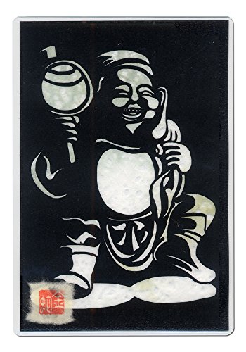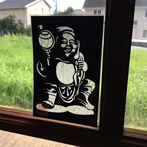 Cutout picture Japanese art collage KIRIE “Seven Lucky God · Daikokuten” Seven Deities(Gods) of Good Fortune Made by Washi(Japanese paper) Wakakami color, 4” x 6”