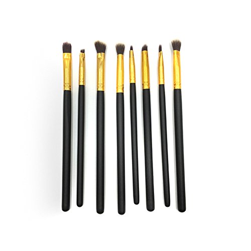 - EYE BRUSH SET includes 8 professional quality SYNTHETIC eye brushes. Perfect for applying, shading and blending products. This basic eyes kit is ideal for all over eye makeup application. Purchasing this professional eye kit is definitely the right investment. You will love the brushes when they arrive at your door step and you will change your mind about eye brushes. This essential makeup brush set includes eye shadow brushes, eye liner, eye pencil and blending brush.