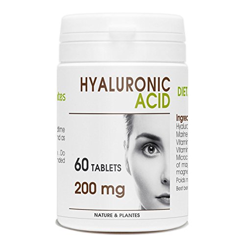 -. Binding : Health and Beauty -. Brand : Nature -. EAN : 3700216244065 -. Feature : Hyaluronic Acid - 200mg per tablets - 60 Tablets / 1 tablet a day before bedtime with a large glass of water and as part of balanced diet. -. IsAdultProduct : 0 -. Label : GPH -. Manufacturer : GPH -. MPN : USACIDHYA60TABS -. PackageQuantity : 1 -. PartNumber : USACIDHYA60TABS -. ProductGroup : Health and Beauty -. ProductTypeName : HEALTH_PERSONAL_CARE -. Publisher : GPH -. Studio : GPH -. Title : Hyaluronic Acid - 200mg per tablet - 60 Tablets