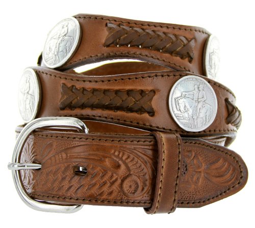 | (Belts.com)/Accessories/Belts Buckles/DIRECT FROM USA/Stone Mountain Memorial Coin Conchos Western Scallop Embossed Leather belt |