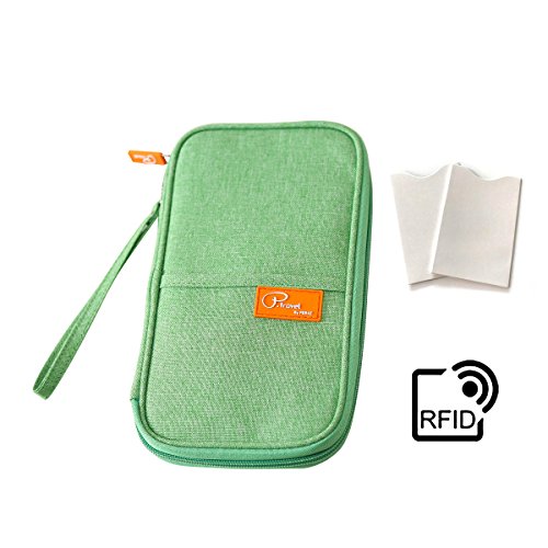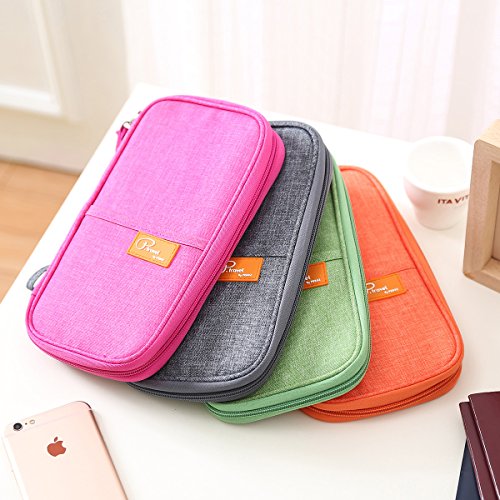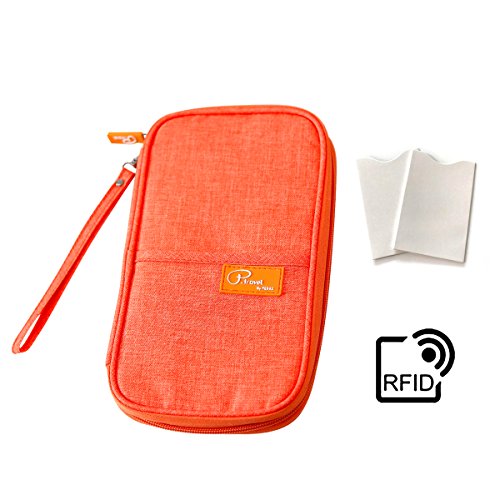 Product Description ▶SPECIFICATION Weight: 4.8 ounces Product dimensions: 9.1" by 5.1" by 1.2" Color: Gray, Red, Green, Orange ▶PREFIT FIT Travel organizer with internal dedicated slots for storing 4 Passports, 5 Credit Cards. And zippered pocket for coins, keys and other important documents, neatly stored items inside. Besides exterior front stash pocket for quick-access items can keep your Samsung, iPhone or Boarding card visible and easily taken out. ▶2 x RFID Blocking Credit Card Sleeves Contain a specialized metal composite which blocks RFID signals Protecting your personal information from unauthorized scans. ▶PREMIUM QUALITY and FASHIONABLE DESIGN To be well made with thin but strong linen cotton environmental blended fabric and great sewn seams. A compact take-along size, and greatly convenience for you to have a travel in savvy or casual style. High quality wallet reveal your delicate attitude of life and pretty color render you become more active and youthful. ▶RELIABLE and FLEXIBLE STRUCTURE Easy to carry and with a wristlet or hand strap, you can release your hand when you want. A full-length zippered pocket and large stash to store your stuff securely, so that you don't need to worry about your stuff would slip down. ▶EXTRA PRACTICAL, EXTRA DURABLE A great reliable attendant for travel keeps the important info right within reach. Suitable for airports, buses, trains, sporting events and music festivals.
