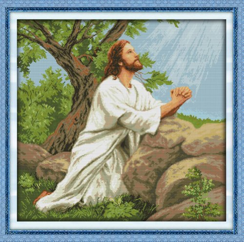 Stamped Cross Stitch Praying Jesus Beside The Tree 11 count 80cm X 77cm (Stamped Aida)