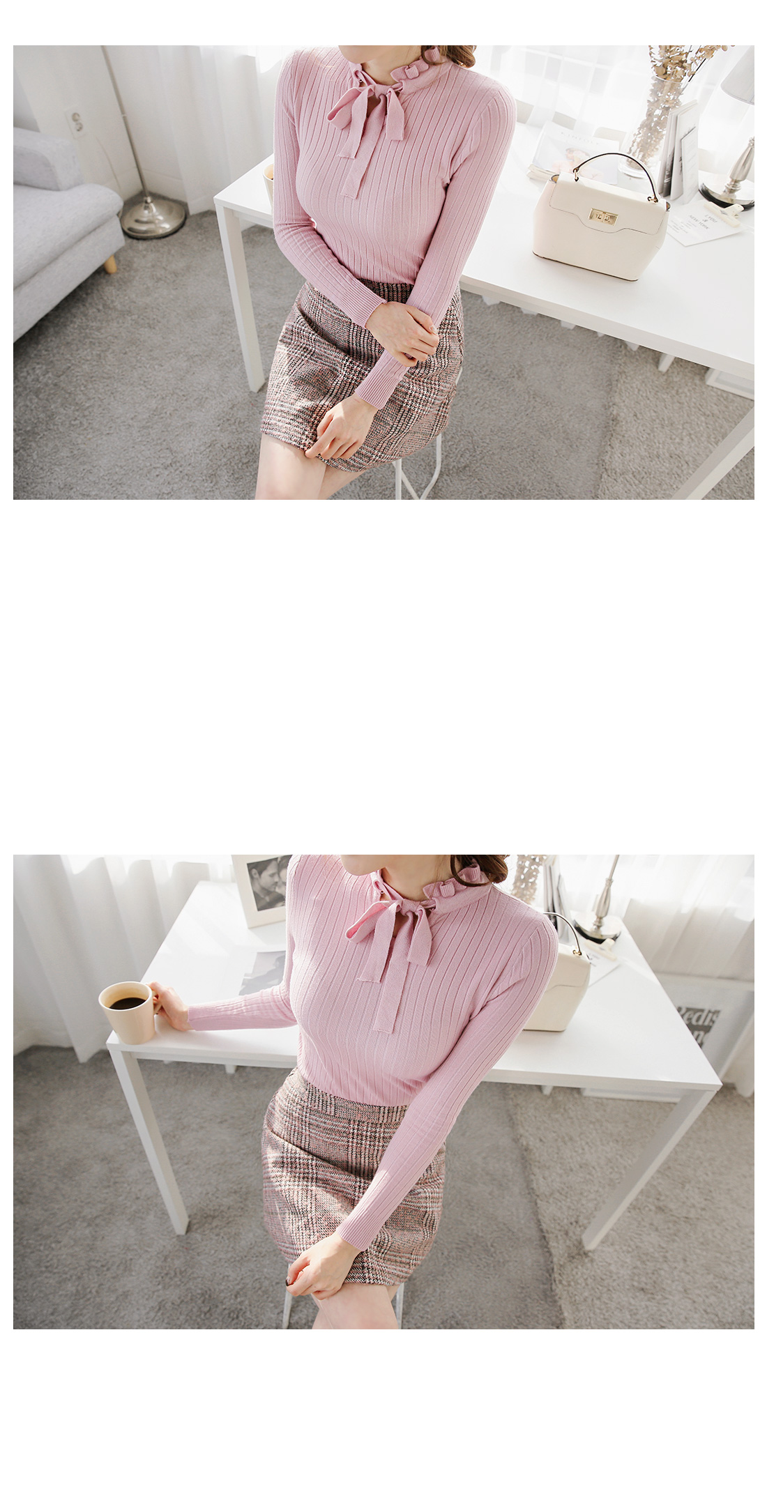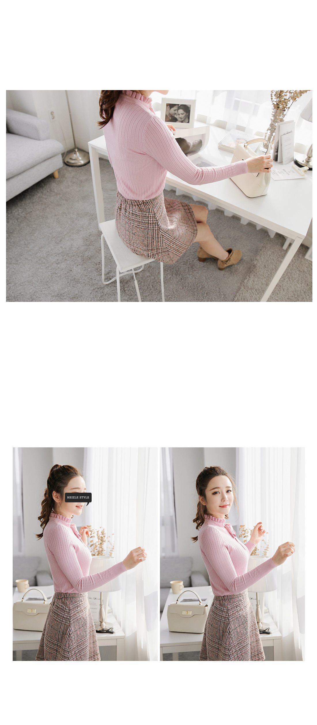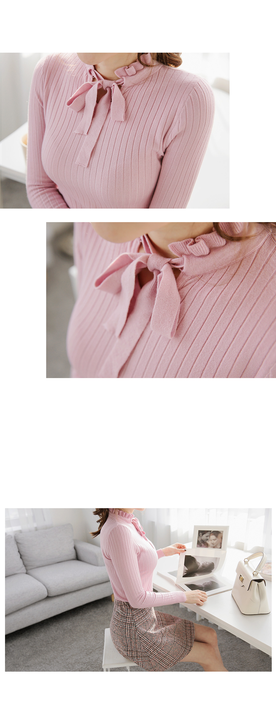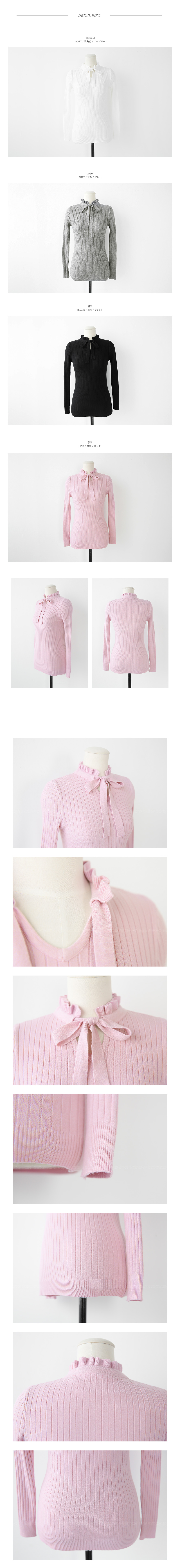 로맨틱한 무드의 니트탑이에요^^쫀쫀한 골지 패턴의 니트소재로착용감이 편안한 아이템이구요타이트한 핏감으로 다양한 룩에손쉽게 매치할 수 있어요!프릴 포인트의 넥라인과 리본끈이로맨틱한 무드를 연출해 주구요과하지않은 스타일로 부담없이연출할 수 있는 니트탑이랍니다^^*스커트,팬츠 등 어떤룩에 매치해도잘 어울리는 아이템이에요~