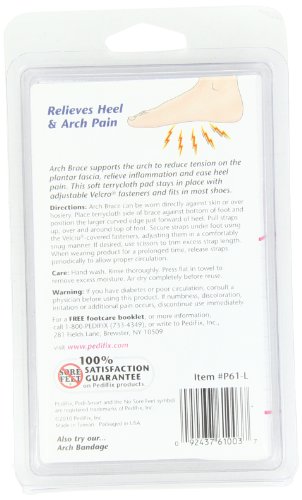 ReleaseDate : 2015-06-22 Studio : PediFix Publisher : PediFix Binding : Health and Beauty Product Description Arch Brace supports the arch to reduce tension on the plantar fascia, relieve inflammation and ease heel pain. This soft terrycloth pad stays in place with adjustable Velcro fasteners and fits in most shoes. 0