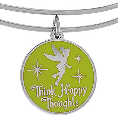 Tinker Bell reminds you to ''Think Happy Thoughts'' with this shimmering bangle by Alex and Ani. Available in gold and silver finishes, this fully adjustable metal bracelet will lift your heart to the stars. Enamel cloisonne ''Think Happy Thoughts'' charm - Energy, Made with Love, and Recycle charms - Adjustable metal bracelet, Expandable for perfect fit - Metal/Enamel - Made in U.S.AFeature