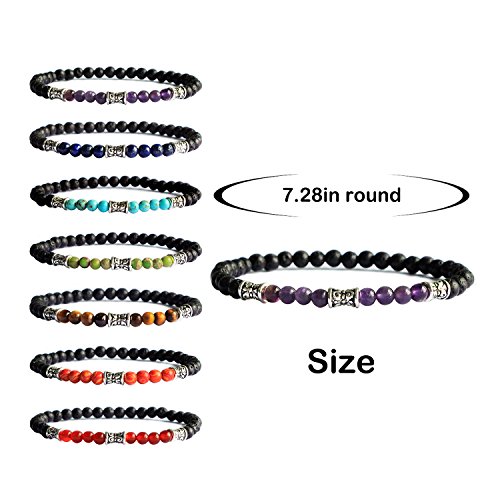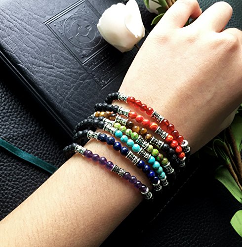 2.MATERIAL: 7Pcs/Set. Natural Gemstone Beads of Red Agate, Malachite, Tiger Eye, Green King Stone, Turquoise, Lapis Lazuli, Amethyst and Black Lava Rock Stone.