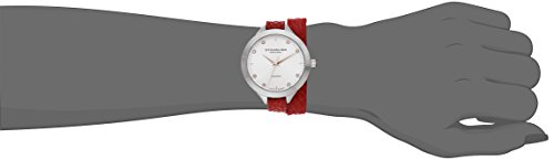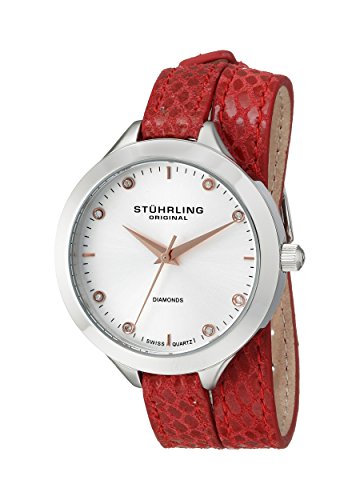 Polished stainless steel round shaped case with knurl edge crown and red python design double wrap strap