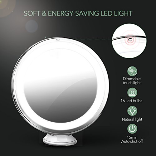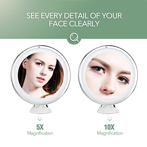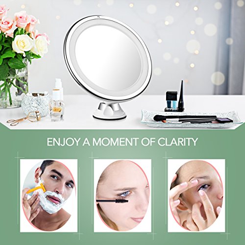 Mpow 10X Magnifying Lighted Vanity Makeup Mirror with Natural White LED,15 Min Auto Turn Off, 360 Rotation, Strong Locking Suction Bathroom Mirror