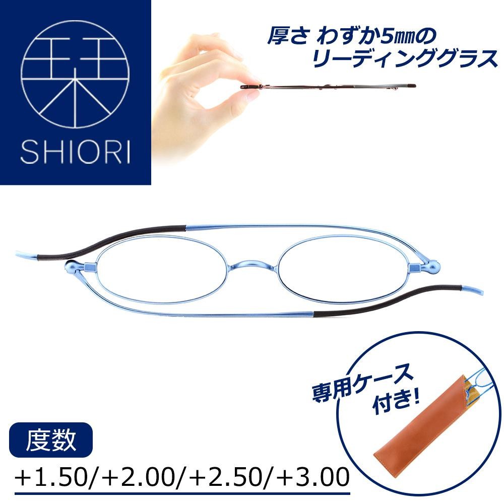 | 「栞(しおり)」には独特なテンプルの開閉方式を実現した、特殊丁番を採用しています。これによりテンプルを折りたたむと、まさに「しおり」のような薄さ!!上下に折りたたまれるテンプルは、それぞれ斜め方向に開閉します。 |