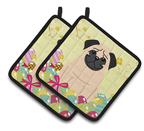 Caroline's Treasures Easter Eggs Pug Fawn Pair of Pot Holders, 7.5HX7.5W, Multicolor