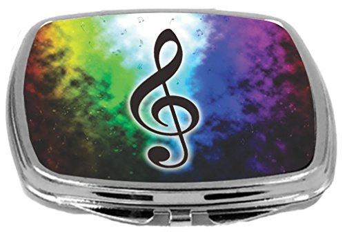 Rikki Knight Compact Mirror, Music Notes On Rainbow Blue Smokey Background