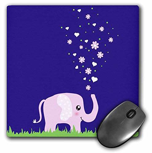 -. Title : 3dRose 8 X 8 X 0.25 Cute Pink Elephant Showering With Flowers And Hearts Kawaii Purple Girly Cartoon Sweet Animal Mouse Pad (mp_113126_1)