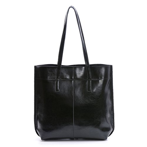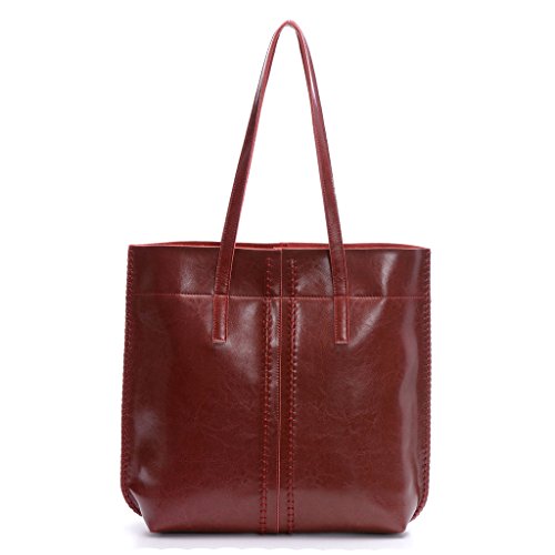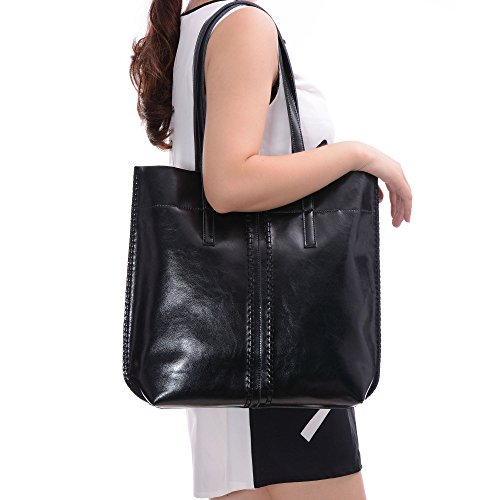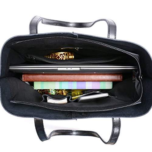 -. Feature : Material:Genuine Leather / Zipper top closure,1 generous main pockets, 2 inner zipper pocket and 2 open pouch for phone or key. / Size: 16.7"L x 14"H x 3.54" W,the weight is 1.69 pounds.Handle drop is at approximately 10.4 inches in height. / Big capacity, fashion design and roomy, definitely a good choice to use as work tote or everyday bag. / This is a fantastic large capacity leather tote handbag that can hold 14 in laptop, A4 file, mobile phone, wallet, cosmetic, IPAD, umbrella and other daily things.