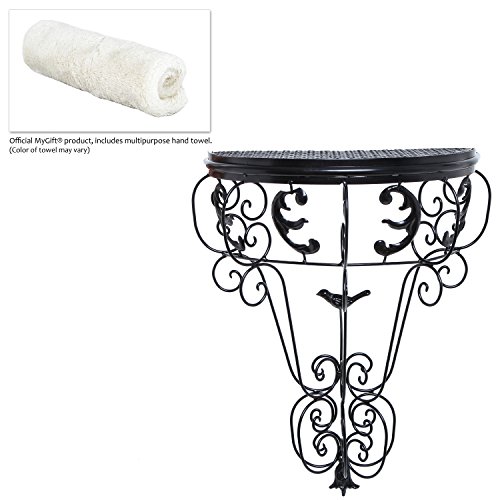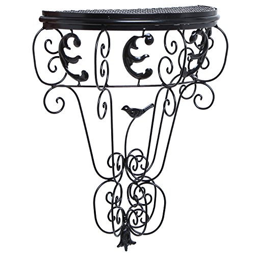 - Feature : A scone shaped wall-mounted display and storage shelf boasting black metal vintage style scrollwork designs. / Features a half-circle shelving ornamented by scrollwork designs with bird and moon accent points. / Creates a space where plants, picture frames, and more can be highlighted on a unique display. / **Official MyGift® product includes multipurpose cleaning towel.** Plants pictured and mounting hardware are not included. / Approximate Dimensions (in inches): 13.75 L x 16.5 H x 7 W.