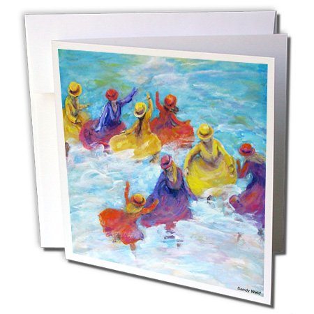 3dRose Surf Dancers Girls in Jewel Colored Dresses Play in Ocean Greeting Cards, Set of 6 (gc_66361_1)