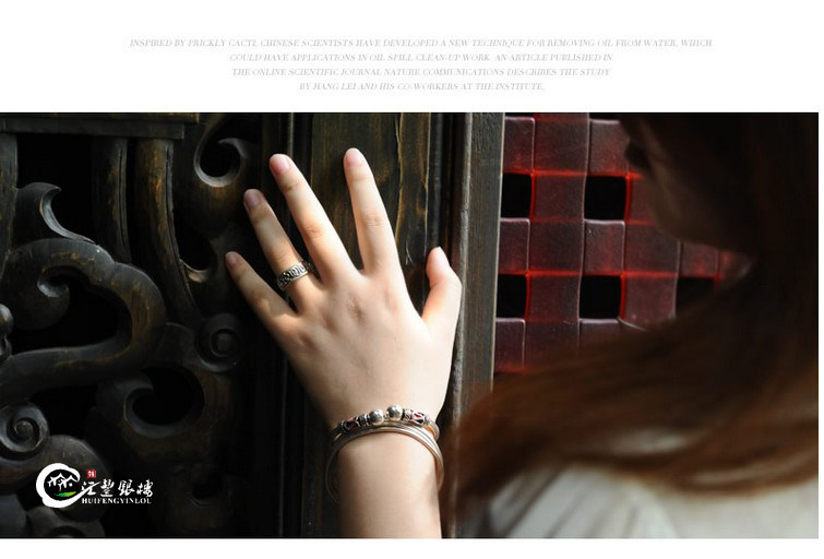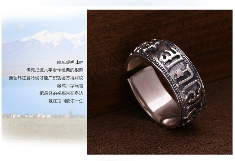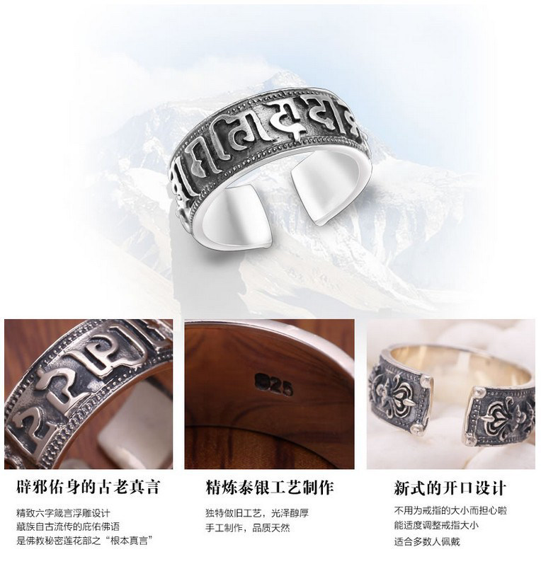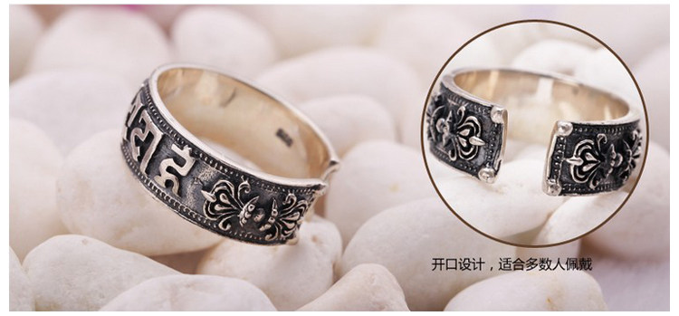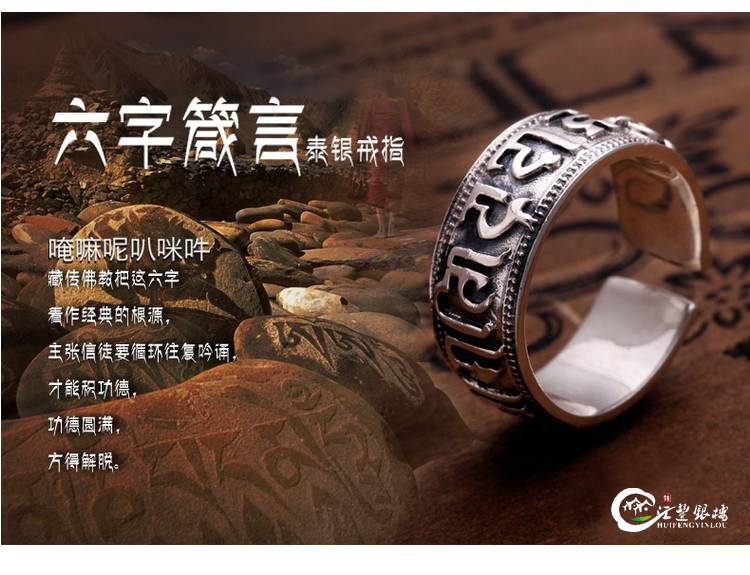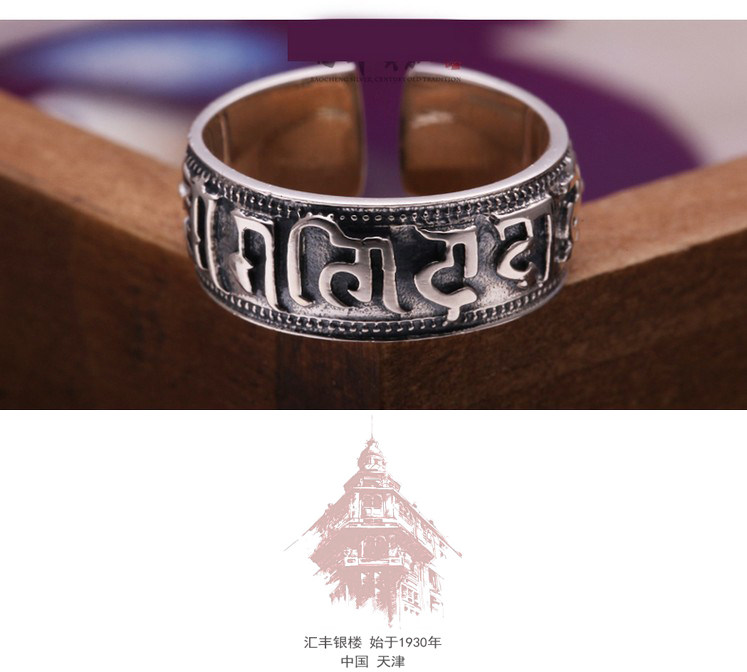 汇丰银楼藏银戒指六字真言转运招财辟邪开光复古开口男女纯银