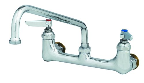 T&S Brass B-0231-CC Wall Mount Double Pantry Faucet with 8-Inch Centers, 12-Inch Swing Nozzle and 1/2-Inch Npt Male Inlets