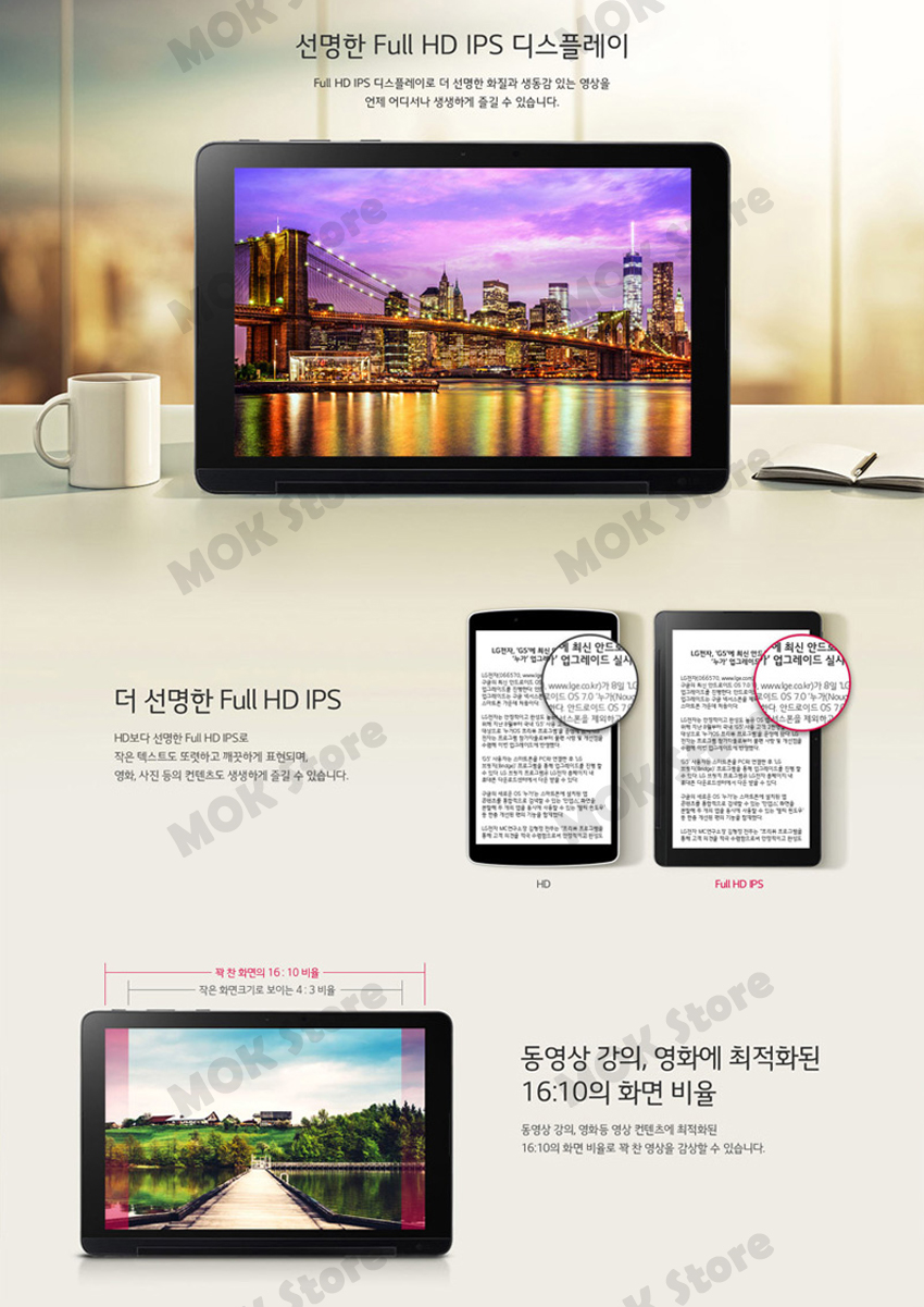 - Size : 256.2 x 167.9 x 6.7 (Upper section) ~ 7.9 (Kick stand section)