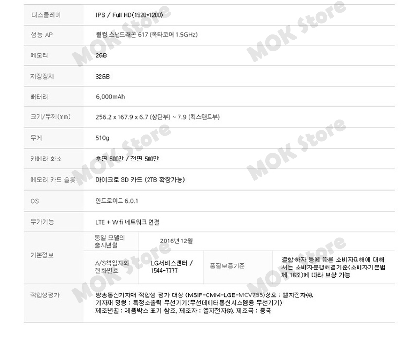 - Camera : 5-megapixel- OS : Android 6.0.1- LTE + WIFI network connection