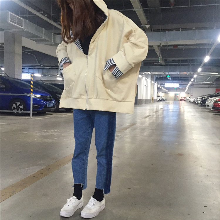 パーカー カーディガン お洒落 カジュアル ストライプ フード 10代 20代 30代 40代
