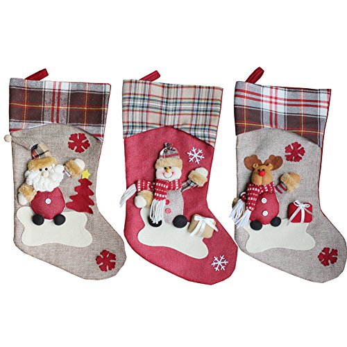Christmas Stockings Holder 3 Pcs Set 18" Cute Santa Wapiti Snowman Fireplace Stockings Gift Bag Classic for Decoration (Style2)