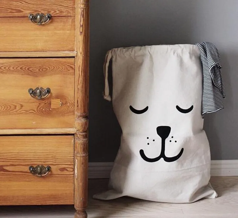 Cute Baby Toys Storage Canvas Bags Bear Batman Laundry Hanging Drawstring Bag
