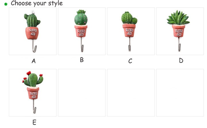 Wall Hook Cacti Adhesive Artificial Flower Pottedplant Home Decor Storage Organizer Key Rack Bathroom Kitchen Stick Towel Hanger
