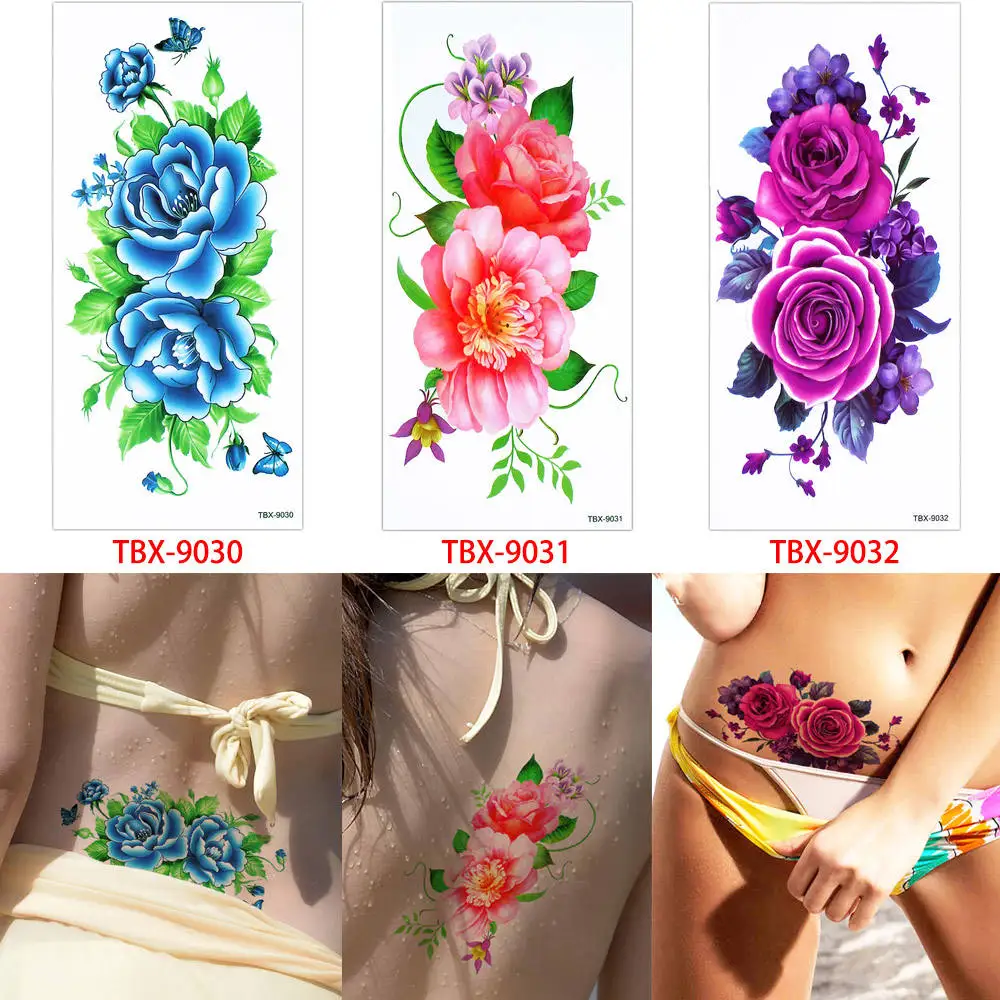 Temporary Tattoo Design:Watercolor / Colored Drawing Flower Tattoo Sticker Beach Party Bar DIY