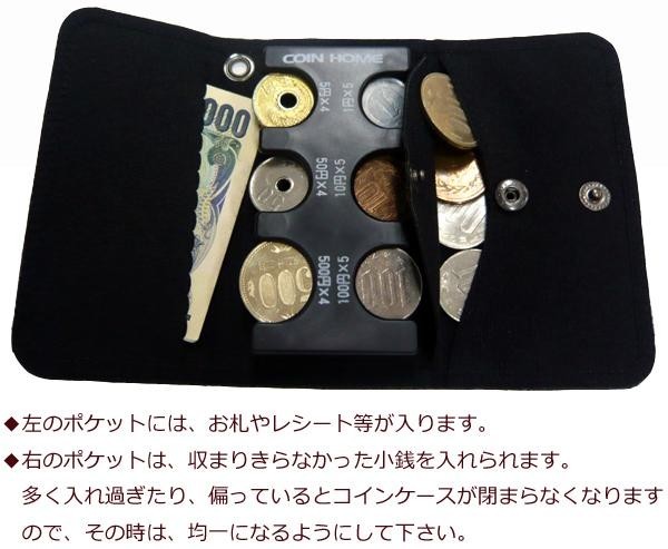 | 1円玉から500円玉まで6種類の硬貨を収納でき、 片手で容易に扱える携帯コインホルダー「コインホーム」と、コインホームをより効率的に使える専用ケースのセットです。ケースの内側にはポケットが付いているので、コインホームに収納できない小銭やお札などを入れることができます!! |
