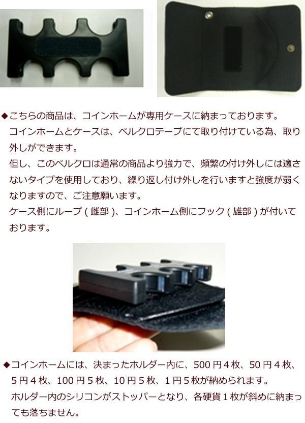 | 素材・材質 | 【コインホーム】 ABS樹脂、シリコン 【ケース】 表生地:人工スエード 中生地:ナイロン コインホーム接続部:ベルクロ(ループ、フック) |