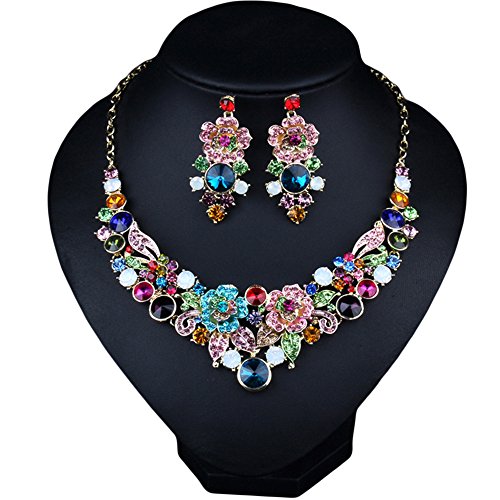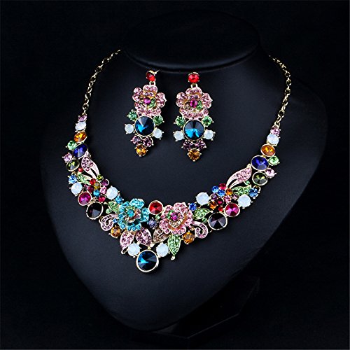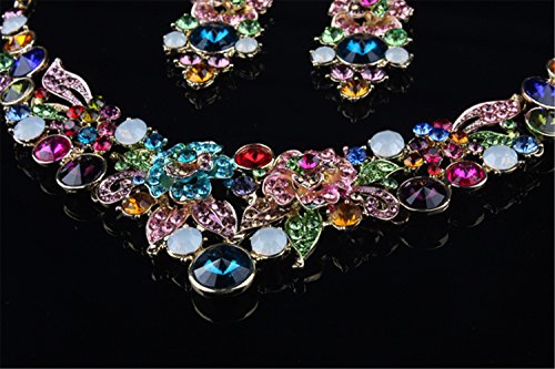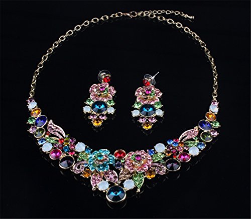 Title : Girl Era Luxury Handmade 3D Bling Crystal Rose Flower Gem Statement Collar Necklace Earring Set