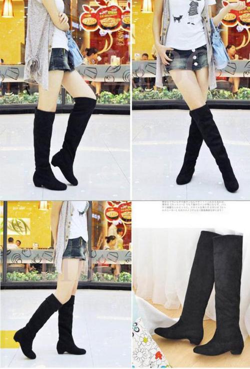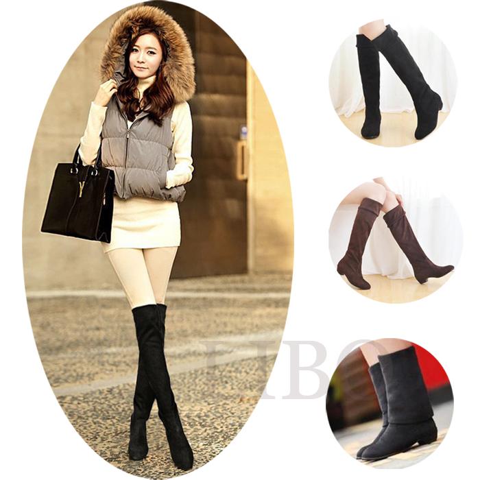 New Sexy Women Winter Over Knee Faux Suede Stretch Thigh High Slouchy Heel Boots Shoes