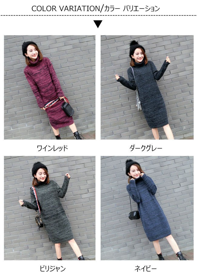 | 商品名 | ニットワンピース ニットセーター インナーワンピース レディース 秋冬ワンピース ミディアムワンピース タートルネック 膝丈 2017秋冬新作 |