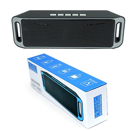 -. Feature : FULL & HIGH-DEFINITION SOUND: Enjoy an impressively crystal clear sound quality from our Bluetooth Speakers and robust bass realized through dual high-performance drivers and passive subwoofer / STEREO SOUND & MEGABASS: Our Bluetooth Speakers with advanced digital sound, noise/wind reduction technology, and unique loudspeaker cavity structure to deliver premium acoustic sound, crystal clear balanced bass. Perfect for home, parties, back to school, Christmas gift, Thanksgiving day, Halloween, Black Friday, etc / FUNCTION & RECHARGABLE BATTERY: The Bluetooth Speakers with built-in high capacity rechargeable lithium polymer, can be replenished via the micro USB charging port. Answer phone calls through hands-free. Bluetooth V4.0 works with cell phones, iPad, iPod, Tablets, and play audio from Laptops, PCs, mp3 players, 3.5mm audio mini jack allows simple wired connectivity / ULTRA PORTABLE: The portable Bluetooth Speakers with size: 8.6x2.8x1.7 inches, less than 13 ounces. High capacity rechargeable 1800 mAh lithium battery for up to 6 hours of playtime at 2/3 volume on a full charge. Support TF Card storing music files and you can enjoy a multimedia library. Built-In FM Radio, better for travel and hiking, super-light and easy to fit in your backpack, baggage / WARRANTY & CUSTOMER SERVICE: 2-year warranty guarantee, 24-hour online customer service, 100% money back policy if you are not satisfied with our product. Rest assured. Choose our Bluetooth Speakers and enjoy the beautiful life