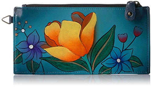 Anuschka Anna By Anuschka, Handpainted Leather Organizer Wallet,floral Garden Denim Credit Card...