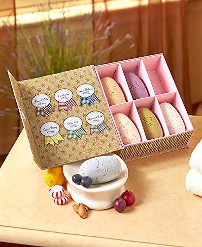 - This 6-Pc. Sampler Soap Gift Box includes: Almond Milk, Cranberry, Crushed Blueberry, Lemon Poppy, Olive Oil, Peppermint Bark