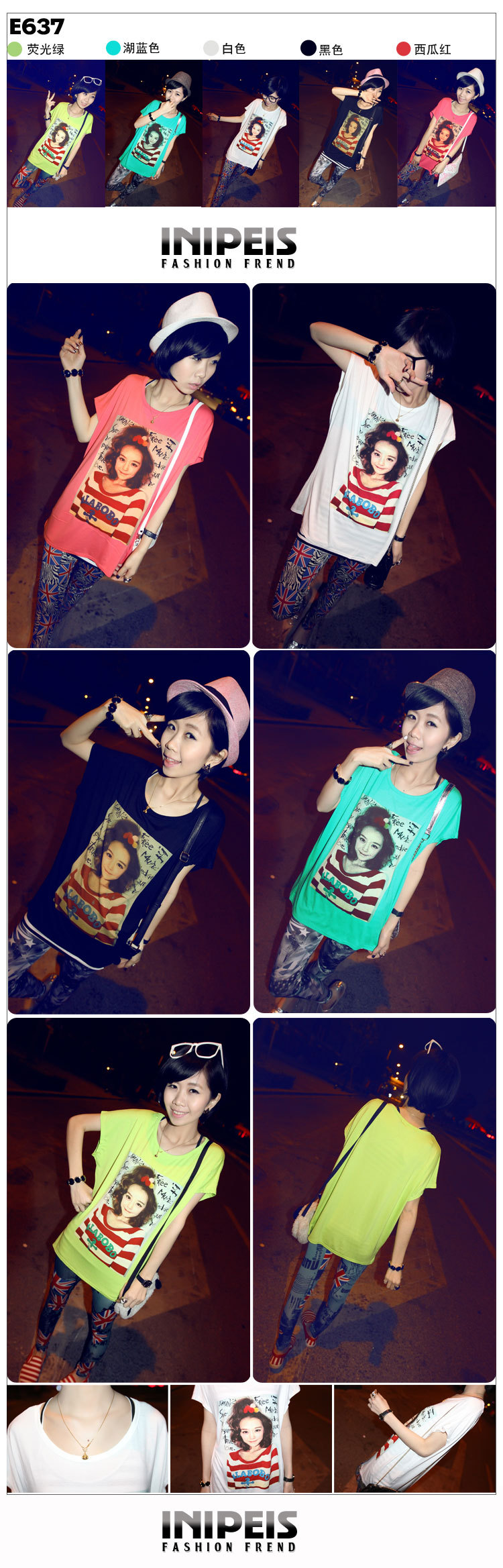 2013 Summer New Fashion Women t shirt ,loose bat short-sleeved t shirt,Cartoon t shirt 12 Styles