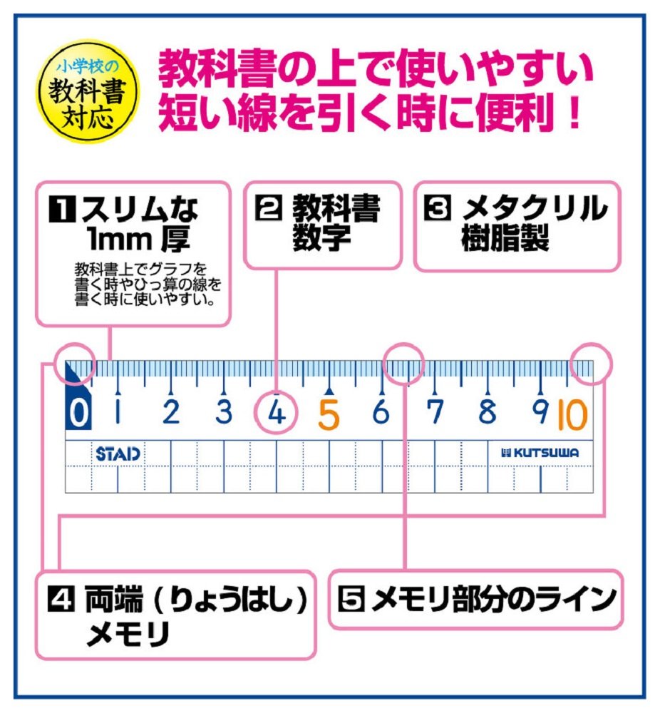 Kutsuwa STAD math ruler 10cm HS10A