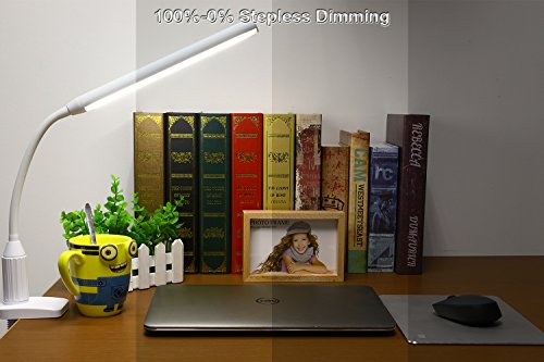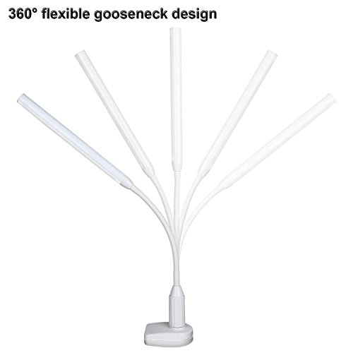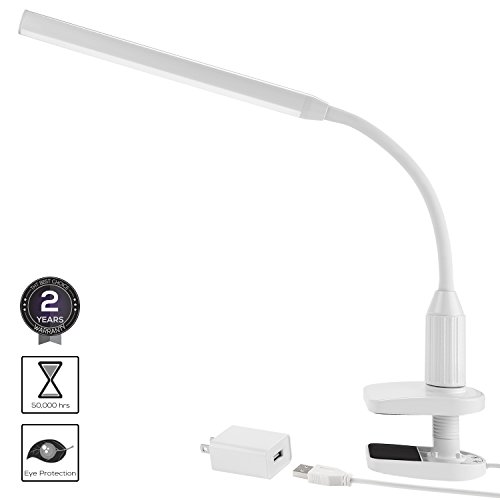 Torchstar 24 LEDs Dimmable Flexible Gooseneck Clamp Desk Lamp Eye-Care Touch Sensitive 5W Light, Memory Function, USB Charger + Power Adapter, 50000 hours Lifespan & 2 Years Warranty (White)