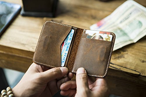 -. Feature : 7.5cm*10cm*1cm /2.95*3.94*0.39". Small size, minimalist style, ideal for your front pocket. / It can hold your ID card,drivers license, insurance card, health insurance card,some credit cards.Holds up to 12 cards, and a few bills / Magnets incorporated into the layers of leather keeps the wallet closed like it was still empty.The Magnets can directly hold all your money without dropping down. / Beautiful handmade craftsmanship,durable stitching,very soft to touch,roomy yet slim will exceed your expect. / This wallet is literally the best grade leather,compact and functional,will only get better with age.