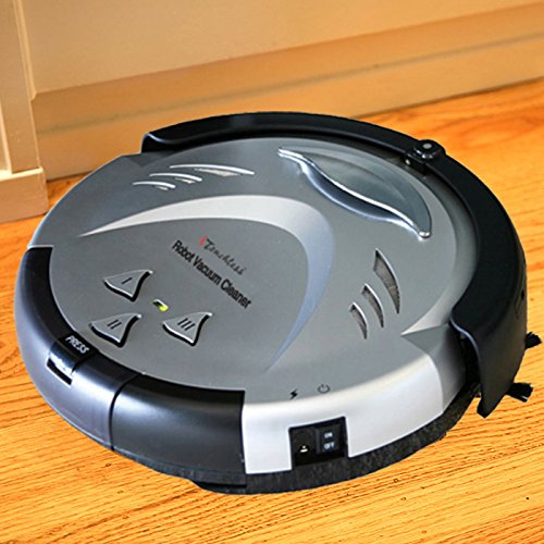 Enjoy fresh, clean carpets and floors with no effort - let the iTouchless Robotic Vacuum Cleaner do the work! Strong Suction, Pet Fur Cleaner - Long Lasting Battery - 3 Cleaning Modes - Cleans carpets, hardwood, tile, linoleum floors - Avoids Stairs and Furniture iTouchless Robotic Vacuum Cleaner, Silver. Automatically cleans up pet fur and dander, and other allergens like dust, hair, and dust mites. Breathe easier and enjoy a healthier, more hygienic home without lifting a finger. The sophisticated 4-Part Brush System features independent brushes that clean along walls, under furniture, and on multiple floor surface types. The main brush is easily removable, for easy cleaning and removal of tangled hair or string. The easy to remove dustbin holds a full cleaning cycle's worth of dust and debris, requiring less frequent emptying. A removable air filter traps common allergens, keeping the air in your home cleaner. The deep wheel tread allows it to pass from hard surface to carpet with ease. The efficient, low-profile design means it can clean under sofas and other hard to reach areas. This next-generation robot vacuum offers premium features, like a longer-lasting NiMH battery that provides up to 60 minutes of cleaning. It also features 3 Pre-Set Cleaning Modes - Spot Cleaning, Timed Cleaning, and Auto-Cleaning - so you can get the precise clean you need. A remote control is included so you can take control and clean wherever you want. The rechargeable battery is easy to remove and connect to any standard wall socket using the included AC Adapter. Package contents: 1 robot vacuum, 1 remote control, 1 rechargeable battery, 1 AC Adapter, 1 air filter and 1 free replacement air filter, 1 side brush and 1 free replacement side brush, 1 cleaning brush, 1 mini screwdriver, and 1 use and maintenance manual.Feature