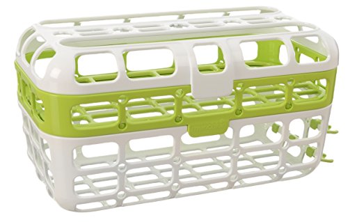 - Feature : Extra-large baby dishwasher basket accommodates both standard and wide mouth bottles / Easily squeeze and slide nipples into place - no need to open top lid to load and unload / Large lower basket holds collars, valves, spouts and other small bottle and sippy cup accessories / Includes straw rack plus special area for holding and cleaning pacifiers / Use in top rack of dishwasher only