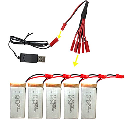 E-wonderful 5pcs 800mAh Battery + 1 to5 JST Plug Charger + USB Wire For JJRC V686 H12C F181 RC Quadcopter