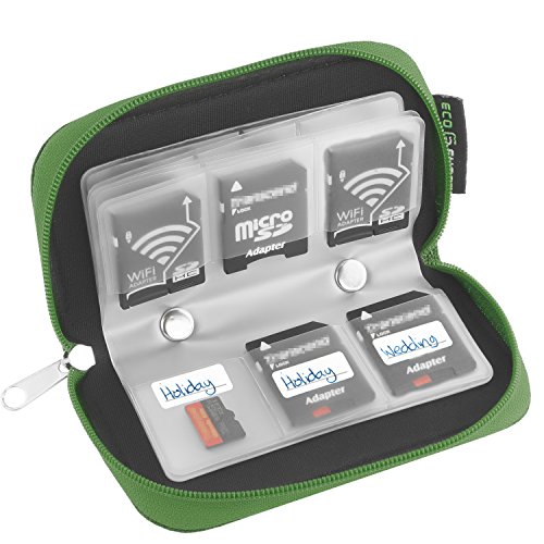 ECO-FUSED Speicherkarten- Tragetasche - Geeignet fur SDHC und SD Cards - 8 Seiten und 22 Slots - ECO -kondensierten Mikrofaser Reinigungstuch Inklusive