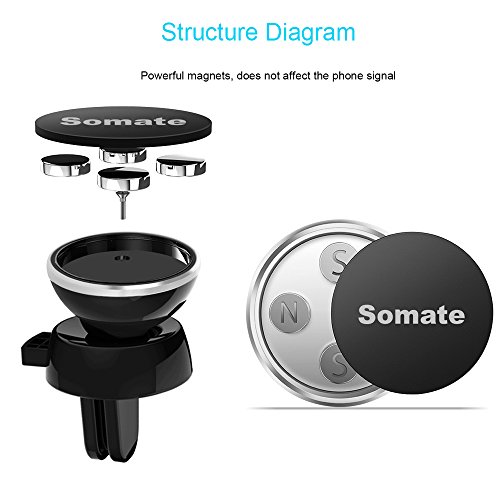 Car Mount, Somate Universal Car Air Vent Magnetic Phone Holder Cradle for Smartphone iPhone X/8/7/7Plus/6s/6Plus/SE/5S/5/4S/4,Samsung Galaxy S5/S6/S7/S8,Google Nexus, LG, Huawei and More(Black)