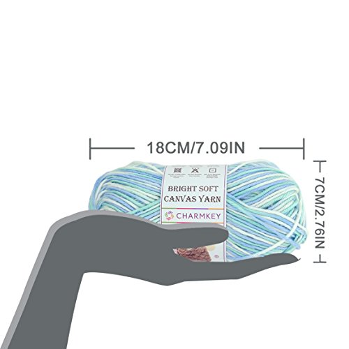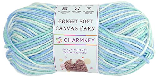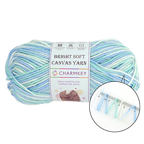 Charmkey Knitting Yarn Ball Bright Soft Canvas Yarn 4 Medium Self Striping Lustrous Acrylic 4 Ply, 1 Skein, 3.53 Ounce (Blue Strips)