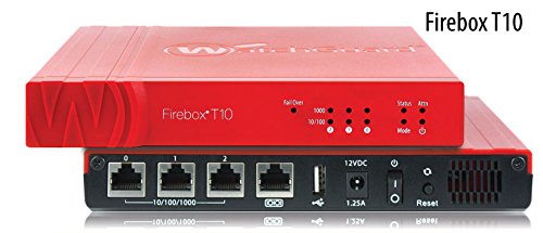 The WatchGuard Firebox T10 delivers enterprise-level security, making it ideal for small office/home office and retail environments. It can be used as a stand-alone security system or centrally managed from corporate headquarters. Flexible management tools and WatchGuard's Rapid Deploy technology enable administrators to quickly setup the T10 device at remote locations so businesses can ensure that they protect where they connect. With up to 200 Mbps firewall throughput, 55 Mbps UTM throughput, and three 1-Gigabit Ethernet ports. WatchGuard Dimension, which provides real-time visibility into network activity and security events, is included at no additional cost.Feature