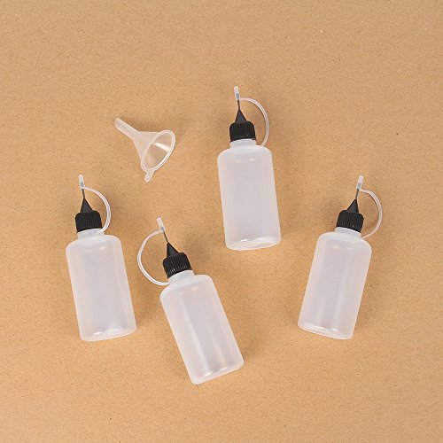 IMISNO DIY Quilling Tool Precision Tip Empty Applicator Glue Bottle, 1.7 Ounce/50ml (Pack of 4 Bottle and 1 Funnel)