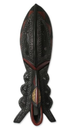 NOVICA Decorative Ghanaian Large Wood Mask, Black 'A Man Of Wealth'