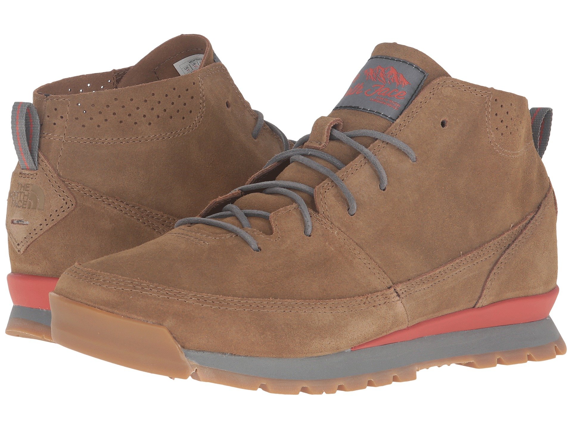 | Product Information SKU: #8708590Please note that this style is either discontinued and/or from a previous season.Navigate the city streets in style wearing The North Face? Back-To-Berkeley Redux Chukka boot.BLC-compliant, unlined suede leather uppers. Lace-up closure. Heel pull loop.Perforations at the collar for enhanced ventilation.Unlined leather interior. OrthoLite? ReBound footbed offers light underfoot cushioning. Compression-molded EVA midsole provides daylong comfort. Compression-molded TPU heel clip helps stabilize the foot. Durable rubber outsole. Imported. Product measurements were taken using size 11, width D - Medium. Please note that measurements may vary by size.Measurements: Weight: 1 lb 2 oz |